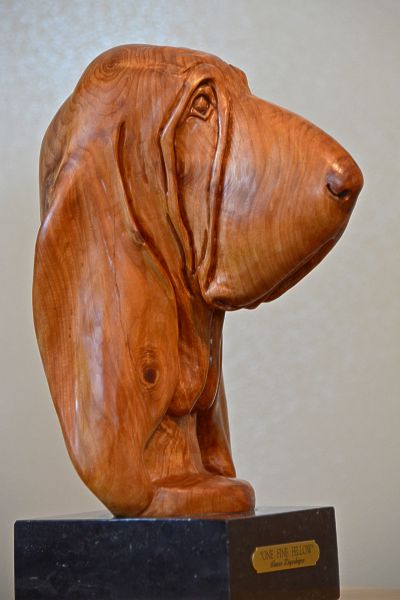 Also see the Bloodhound bronze sculpture. Their loose skin looks like it is oversized for their bodies. They have long muzzles and drooping ears and rather sorrowful looking expressions. For their size, Bloodhounds have very powerful shoulders and backs and make good work dogs. The Bloodhound possesses, to a most marked degree, every point and characteristic of those dogs that hunt together by scent (Sagaces). It is a very powerful dog, and stands over more ground than is usual with hounds of other breeds. Because of their hound heritage, Bloodhounds should never be allowed to roam free without supervision. Bloodhounds do drool, males usually more than females.